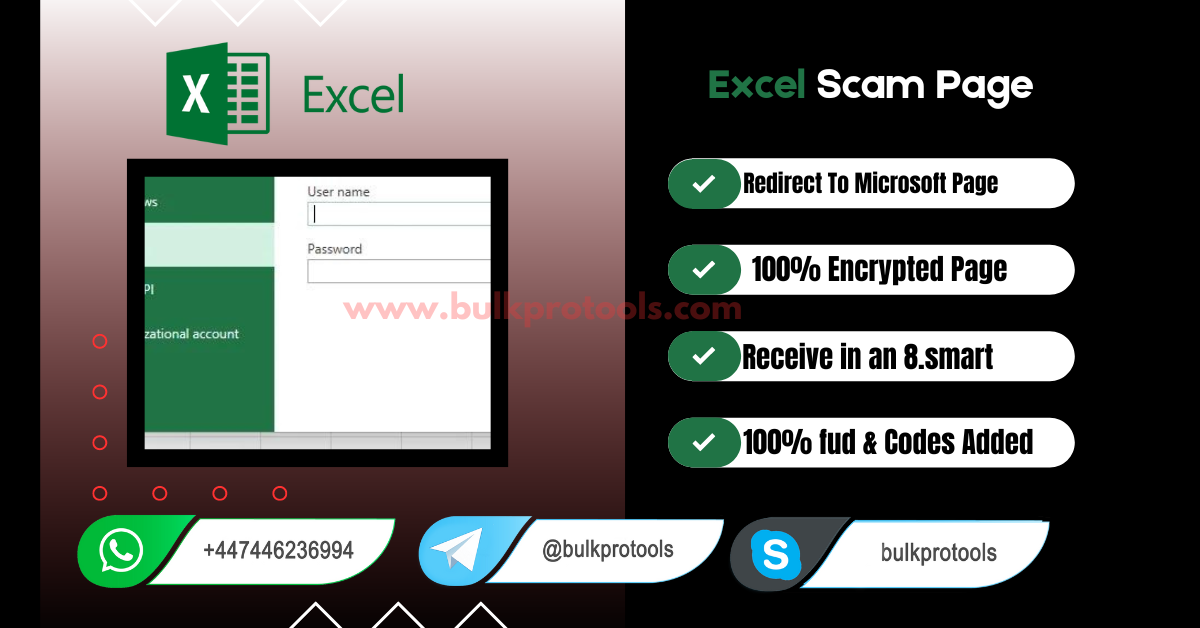 Introducing a new Excel scam page designed for auto-email capture. This page is tailored for business-related phishing and is built to be both resilient and fully undetectable (FUD). It addresses two common mailbox issues, ensuring strong performance. The page supports Google Cloud FUD links and attachments, with HTML options available for one month. Each scam page features a unique auto-email design, created with a private coding method for optimal effectiveness. These scam pages are crucial as they allow spammers to avoid red-flagged domains and remain operational across all devices. The design ensures compatibility and functionality, making it easy for spammers to deploy their content effectively.